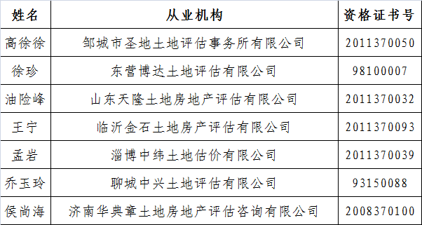 现有高徐徐等7位土地估价师申请初始注册执业登记,已经我会秘书处初步审查通过,现予以公示。对上述土地估价师有异议的,可在2015年2月22日前向我会提出。