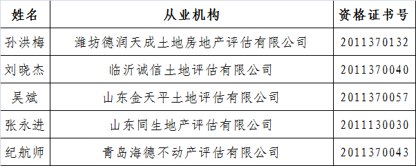 土地估价师初始注册执业登记公示