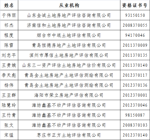 现有于伟丽等13位土地估价师申请初始注册执业登记,已经我会秘书处初步审查通过,现予以公示。对上述土地估价师有异议的,可在2015年7月19日前向我会提出。