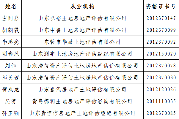 现有左同启等9位土地估价师申请初始注册执业登记,已经我会秘书处初步审查通过,现予以公示。对上述土地估价师有异议的,可在2016年5月22日前向我会提出。