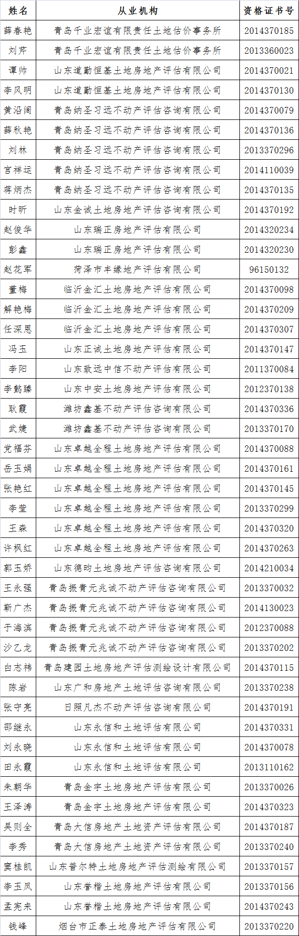 现有薛春艳等46位土地估价师申请初始注册执业登记,已经我会秘书处初步审查通过,现予以公示。对上述土地估价师有异议的,可在2017年2月19日前向我会提出。