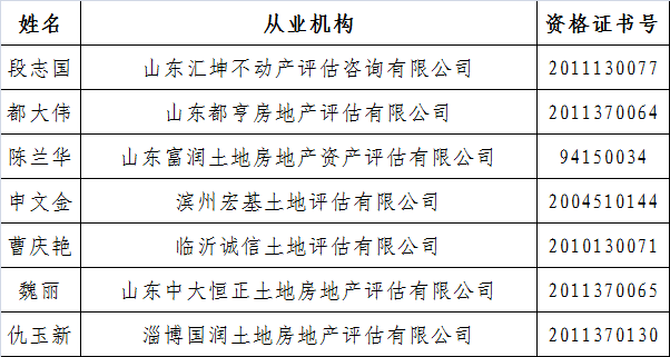 土地估价师初始注册执业登记公示